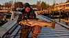 Under ett blåsigt pass på julafton lyckades Robin Karlsson trolla upp en rejäl öring ur Vänerns djup.